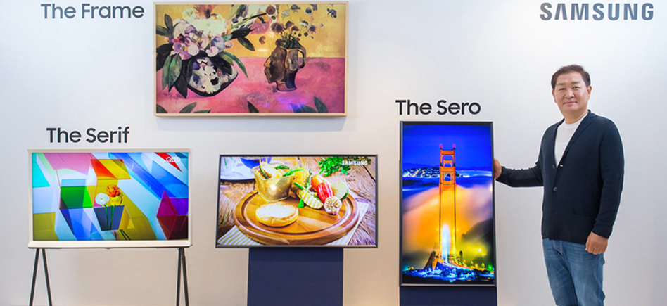 The design of ‘The Vertical’ is different from the existing TV. It has a simple, slim appearance and modern navy blue color. It also has a neat 360-degree clean design to the back.